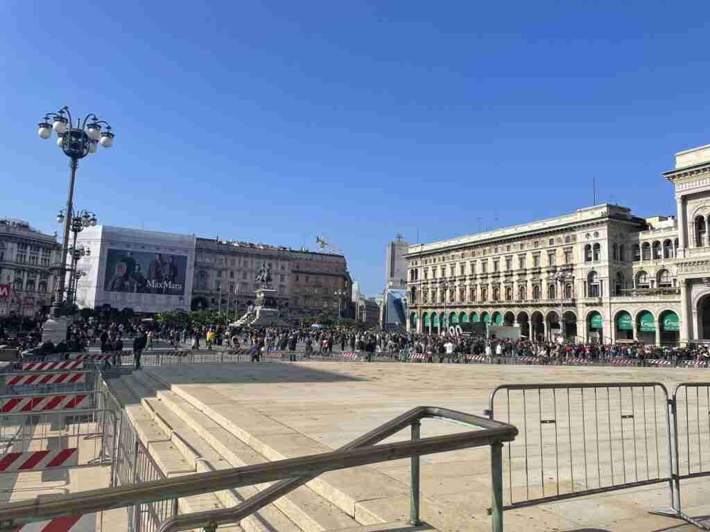 A Duomo tér mindig tele van, főleg hétvégén és ünnepnapokon. A skip-the-line jeggyel pár perc alatt bent lehetsz, míg mások még a napon állnak a sorban.