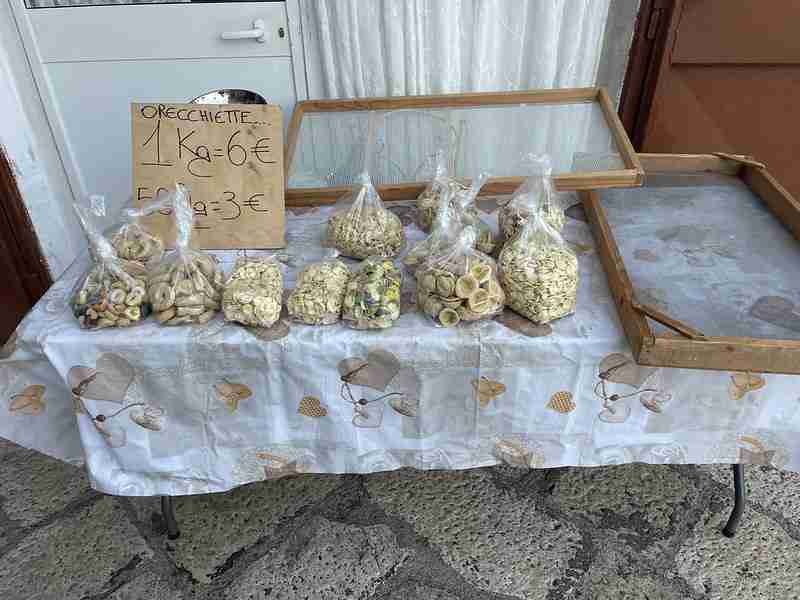 MIvel a tésztás nénik utcája ott van a vár mellett, ki is használtam az alkalmat arra, hogy bevásároljak. A friss tészta mindig ezerszer jobb, mint a bolti, különösen ha még meg is adjuk a módját, így ha Bariban járok, mindig veszek tésztát. Most 6 euró volt egy kiló, ami nem olcsó de még mindig 30%-kal olcsóbb, mint a reptéren, ráadásul tudom ki készítette.