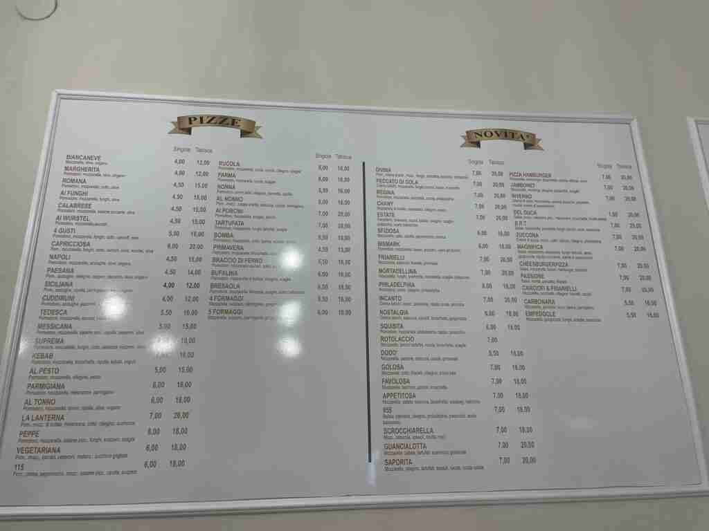 A pizzéria általában elvitelre dolgozik, de van 2 talponálló asztala, a neve pedig La Lanterna.