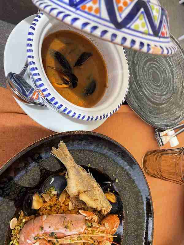 Ha azt is megkérdezitek, hogy milyen ez a halas kuszkusz, akkor azt tudom mondani, hogy sokkal jobb ez a verzió, mint amit Tunéziában lehet enni. Ez itt nem az a száraz kuszkusz, hanem tényleg finom, és az az öntet, amivel meg kell locsolni tényleg nagyon finom! Hogy hol ettük? Az El Jazira nevű helyen. (Ez volt a legközelebb hozzánk.) Teljesen korrekt volt. Aztán most, hogy rákerestem, kiderült, hogy Michelin guide-os kuszkusz étterem is van a városban.
