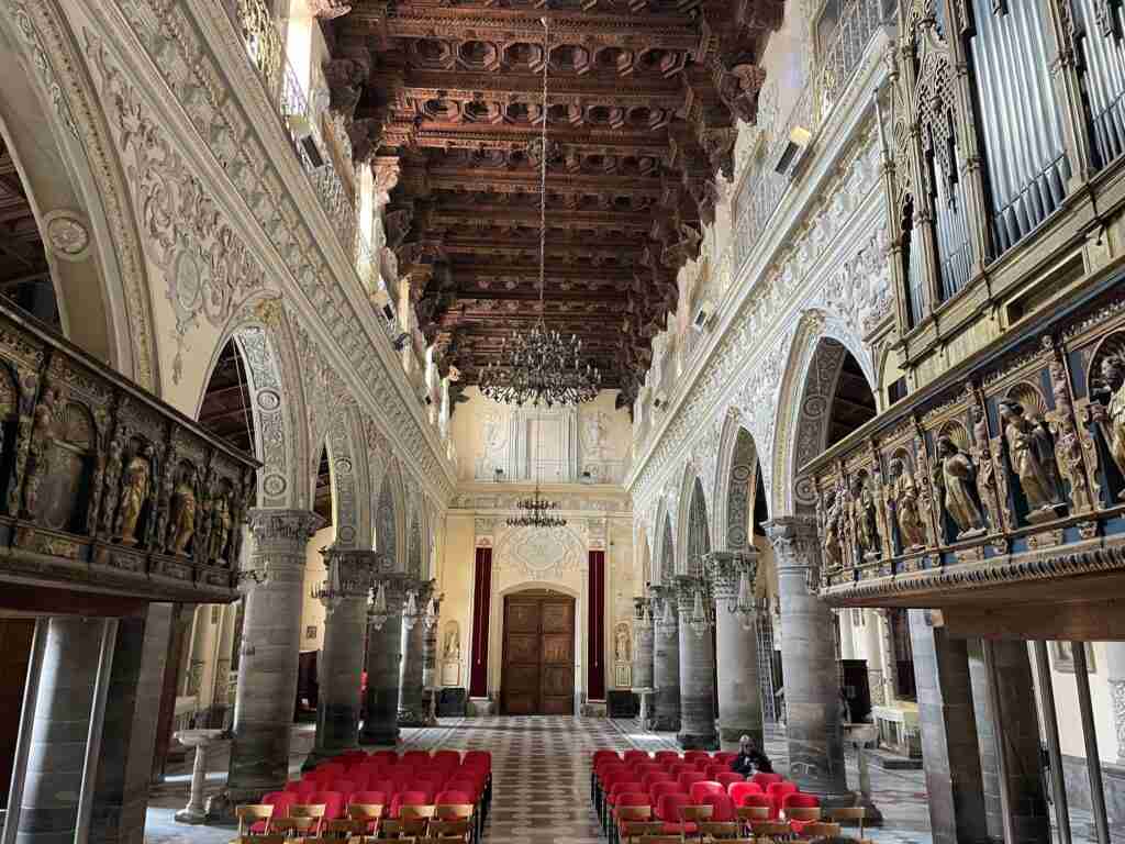 A város egyik ikonikus látványossága a Cattedrale di San Nicolò, amelynek lépcsőjén szinte mindenki megáll egy fotóra. A környék tele van kis kézműves boltokkal, rejtett belső udvarokkal, és persze fagyizókkal, mert itt készül az egyik legjobb pisztáciafagyi egész Szicíliában.